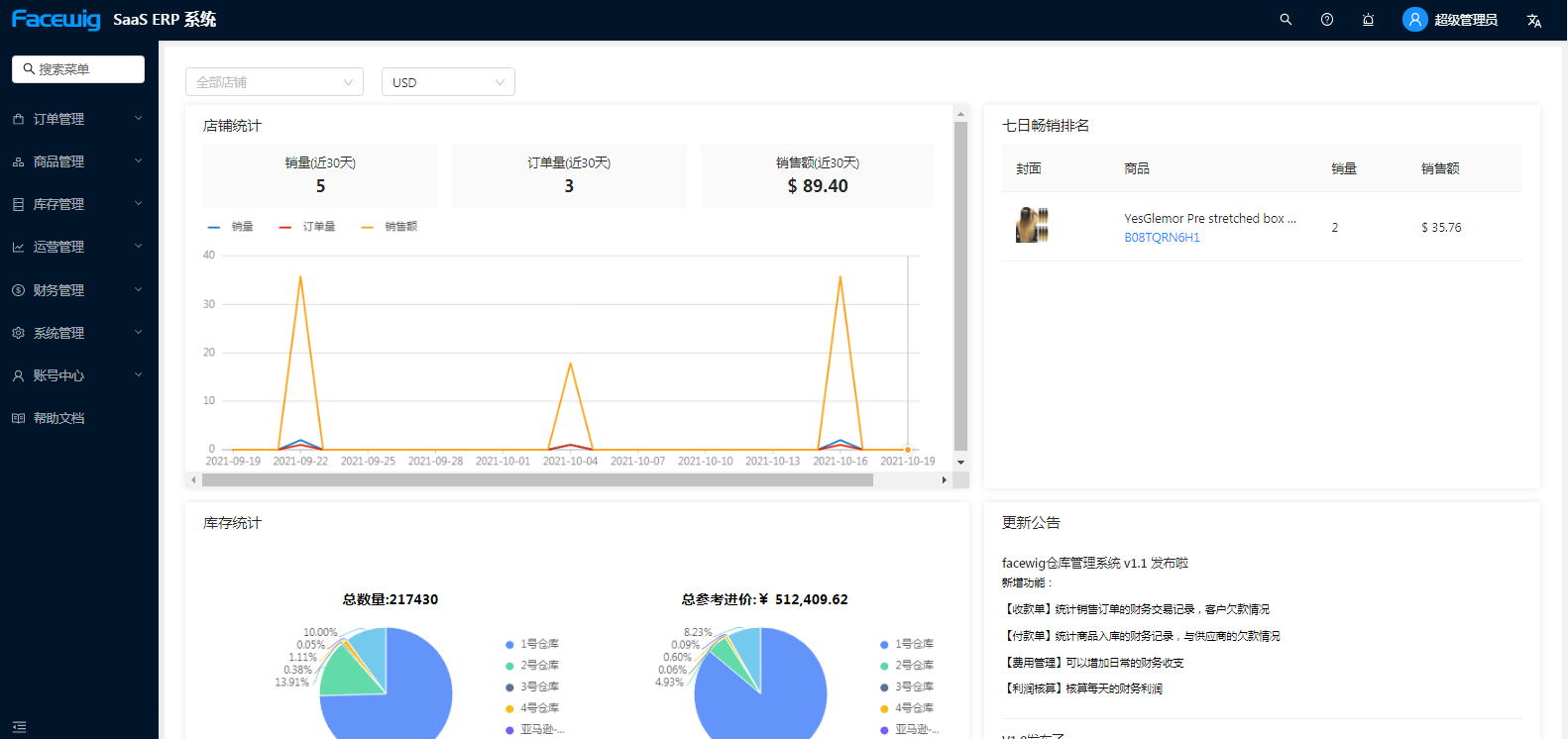 仓库各商品、员工数据,有详细的数据报表,帮助商家对经营情况了然于胸
