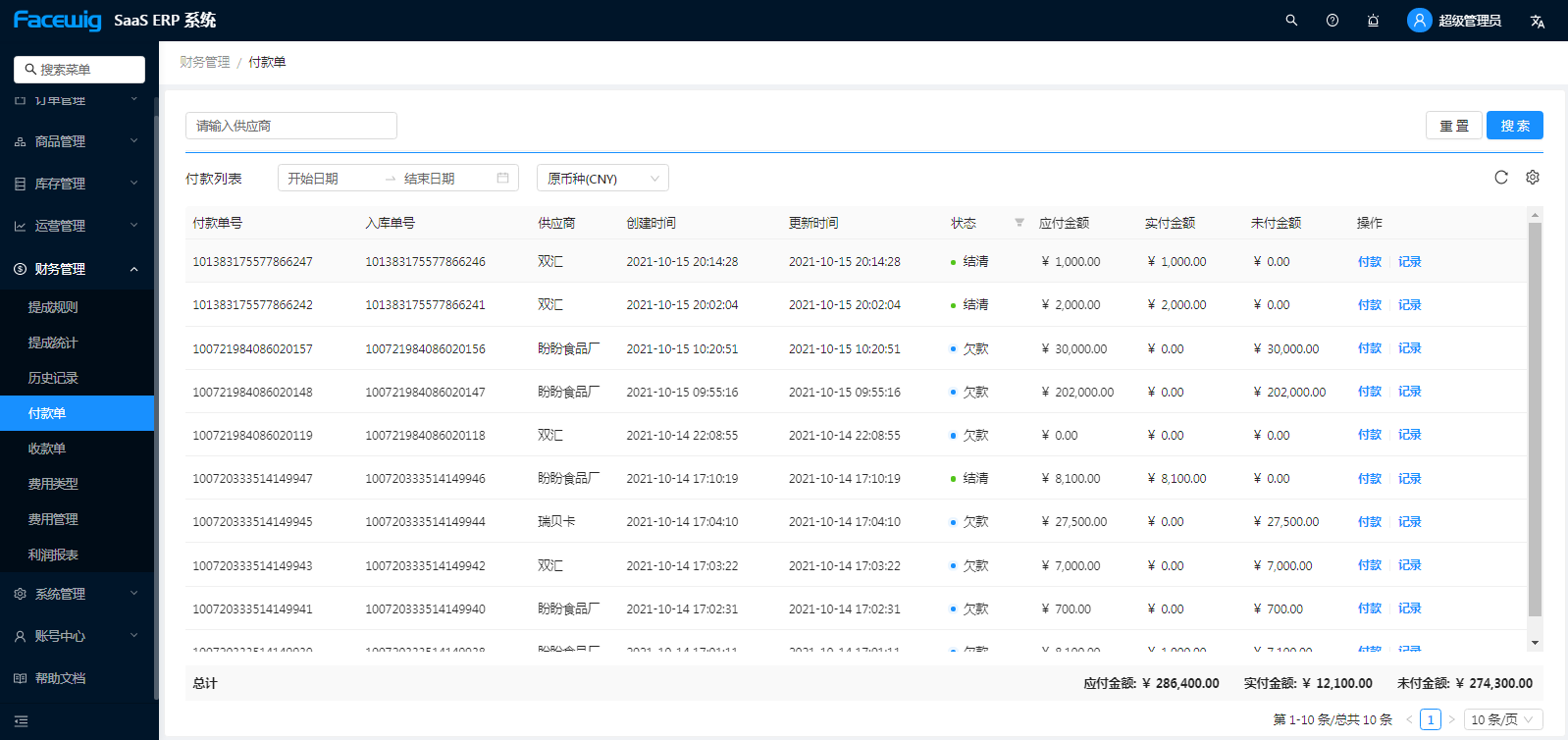 系统记录每一次财货的往来记录,与供应商和客户之间的财务详情,清清楚楚。
